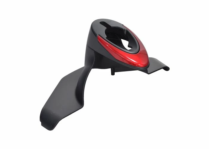 The front fender with red insert for the 3-Wheel Go-Go Elite Traveler Plus (SC53) and Go-Go Sport (S73) scooters is the front body extension that sticks up around the lower tiller assembly